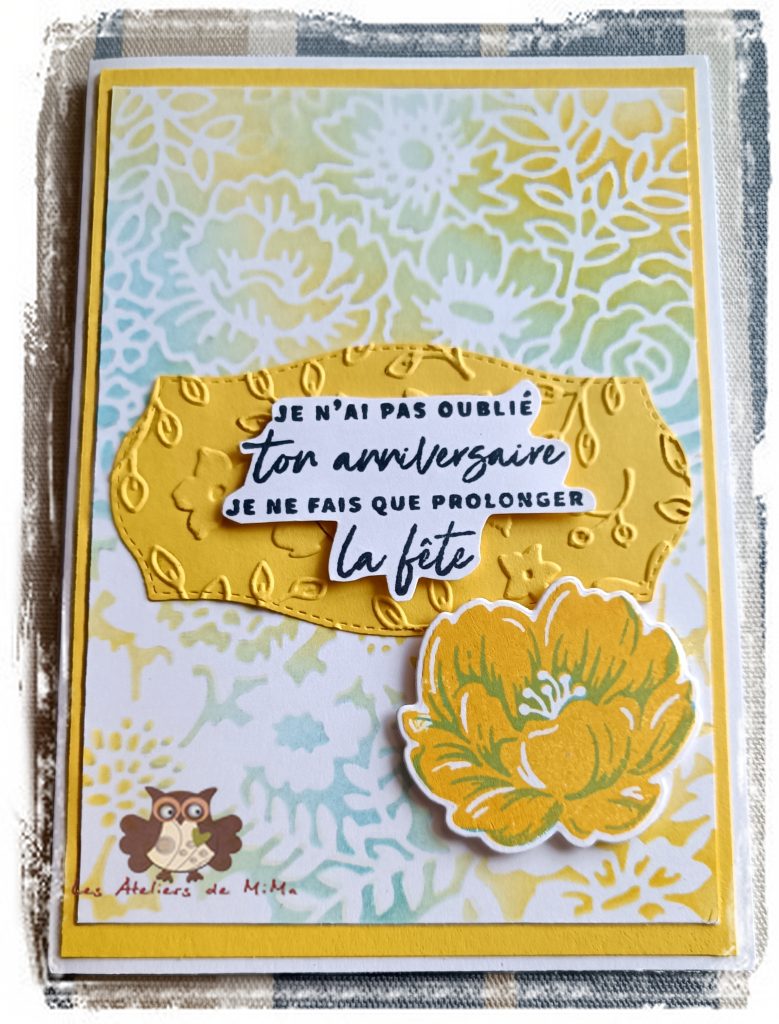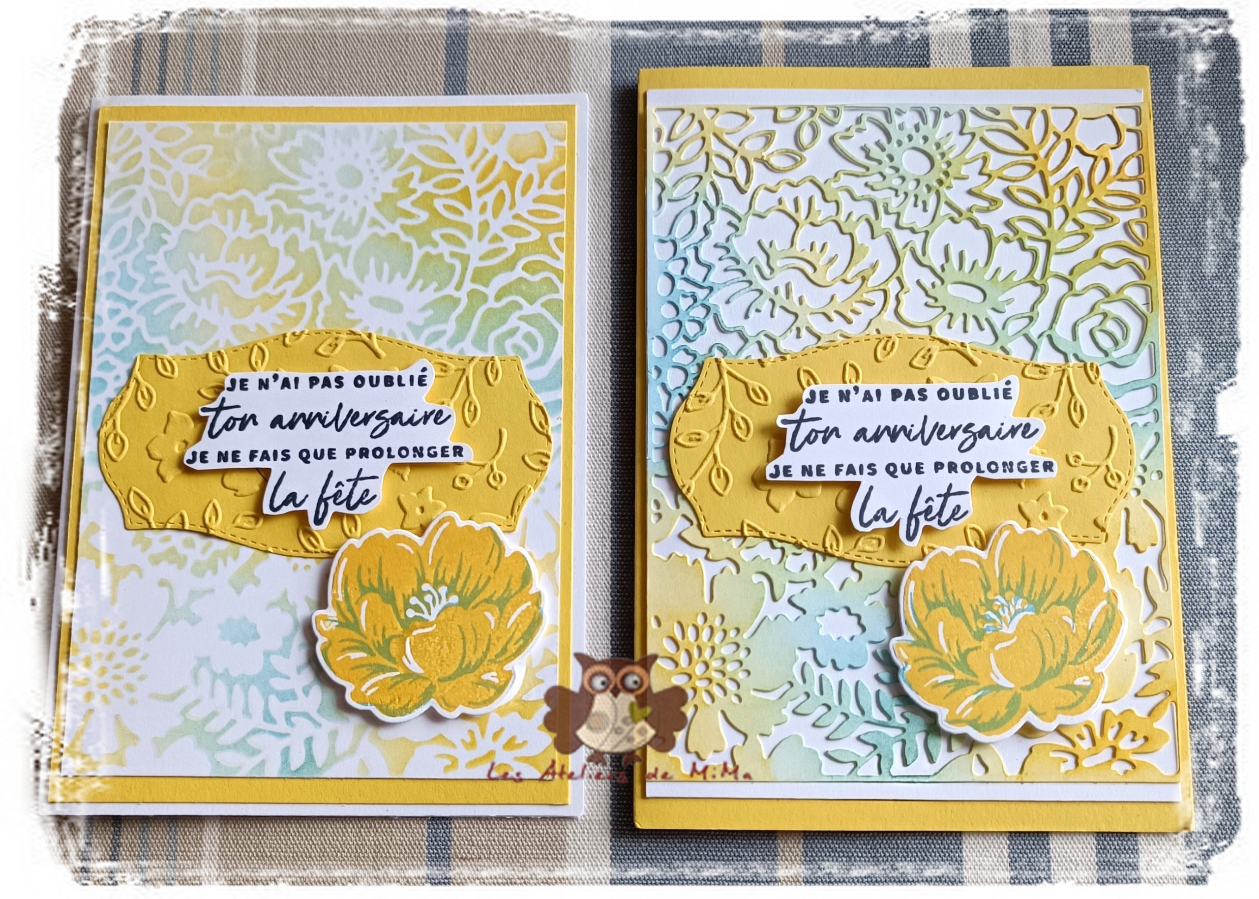 Venez faire ce genre de cartes avec moi. Ou mieux, réunissez quelques ami(e)s et je viens vous montrer comment faire. (martine@lesateliersdemima.fr)